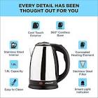 Stainless steel electric kettle with concealed element is quick boiling and easy to clean. The 360-degree cordless pirouette base allows for easy lifting and positioning. The kettle has a capacity of 2 liters and a lightweight, stainless steel body. It's very simple and easy to use. It is the most affordable electric kettle available in Pakistan. It is of excellent quality and does the job well.